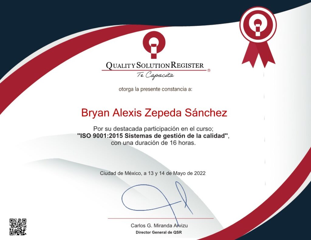 Usuario orgullosamente capacitado en Quality Solution Register.