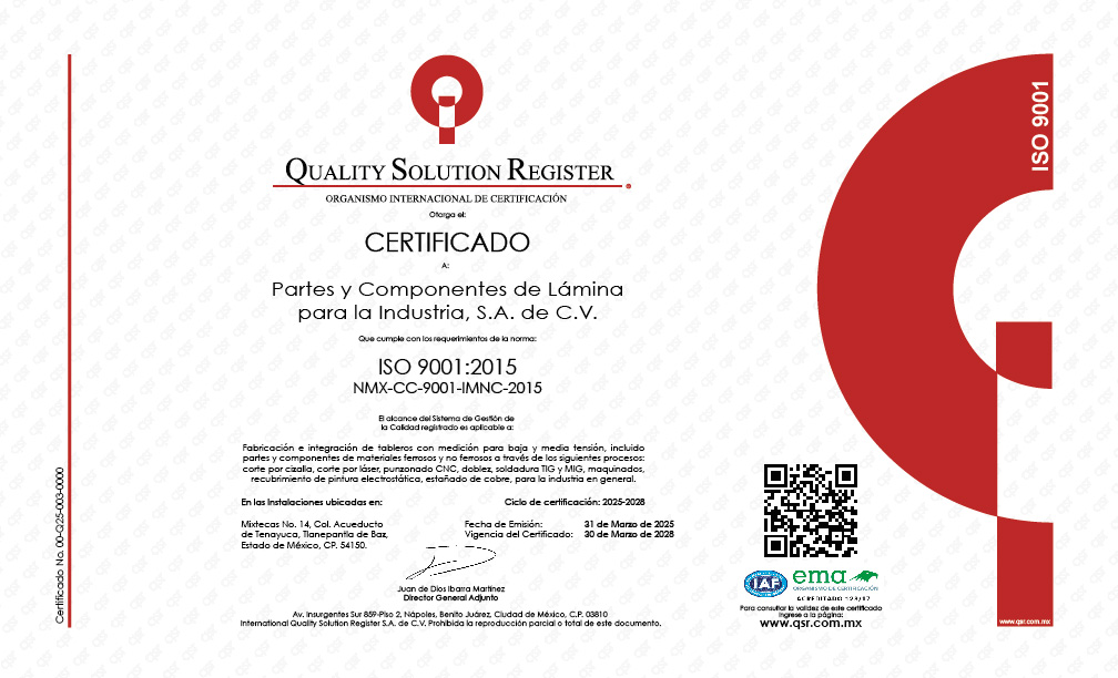 Partes y Componentes de Lámina para la Industria, S.A. de C.V.